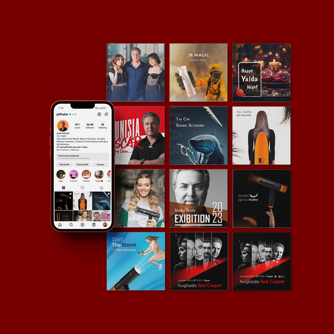 We’re proud to manage the social media presence of JR | Jeffreiisi β€” one of the world’s leading hair stylists and professional tool brands. From product launches to global events like Beautyworld Middle East, we craft content and campaigns that elevate JR’s voice worldwide.